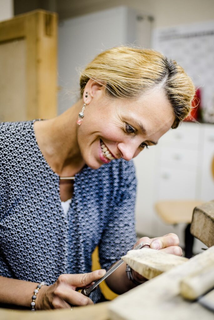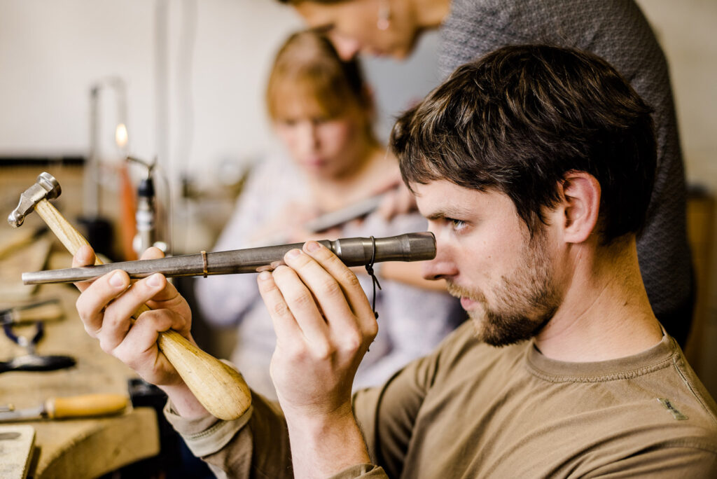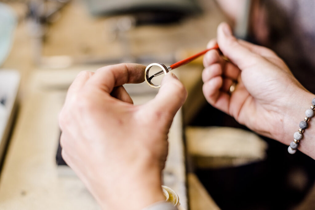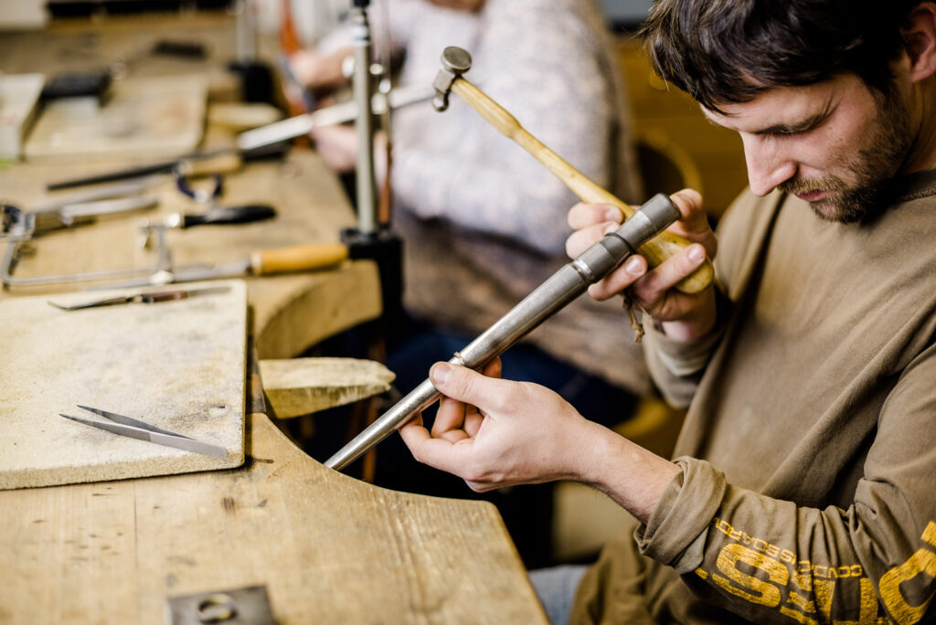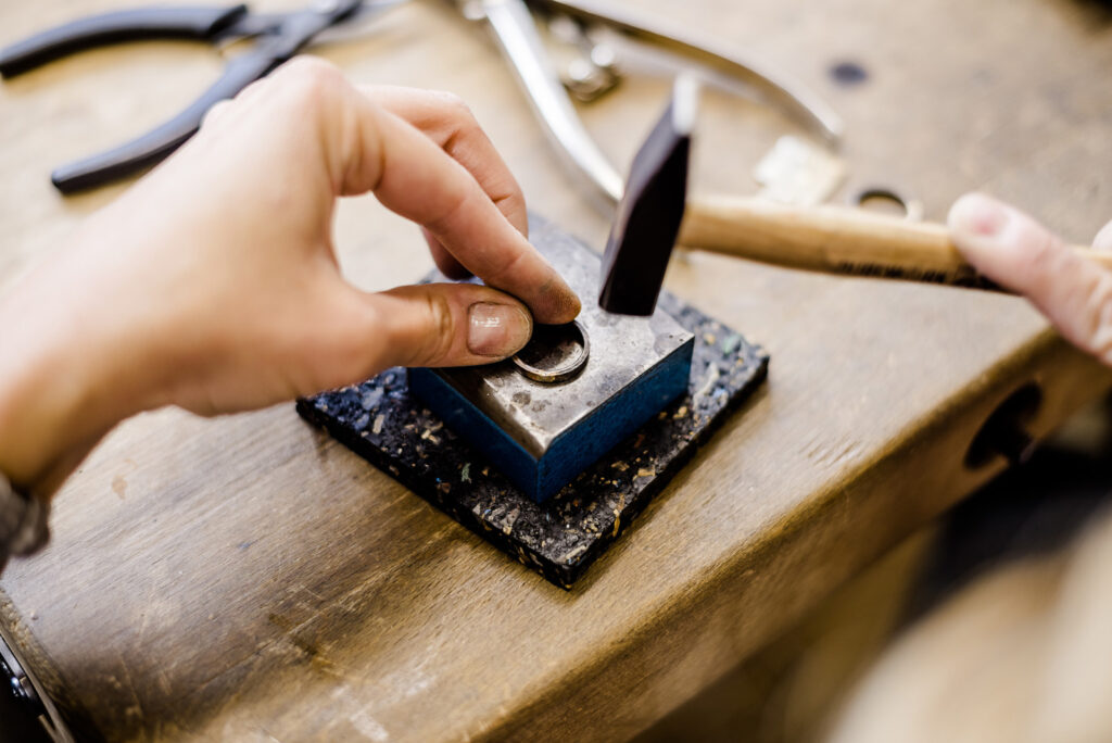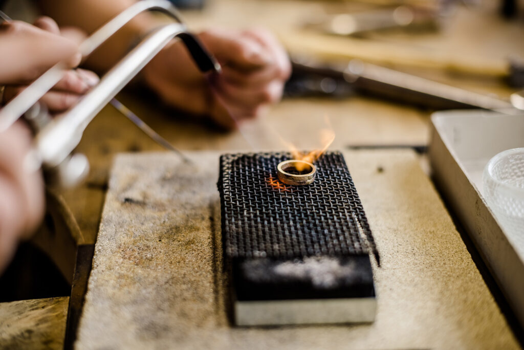 Sarah verkauft nicht nur Eheringe in ihrer Goldschmiede in Dippoldiswalde. Bei Sarah könnt ihr eure Eheringe unter ihrer Anleitung selbst schmieden. Ihr fertigt den Ring für eure*n Partner*in und erschafft damit ein ganz persönliches Geschenk füreinander. Sarah sagt immer, das Ringe schmieden ist ein bisschen wie eine Ehe: es steckt viel Arbeit drin… 🧡